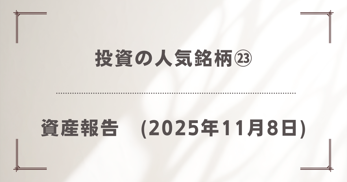2025年11月08日時点での総資産は、3,361,679円(先週比+101,219円)となりました。