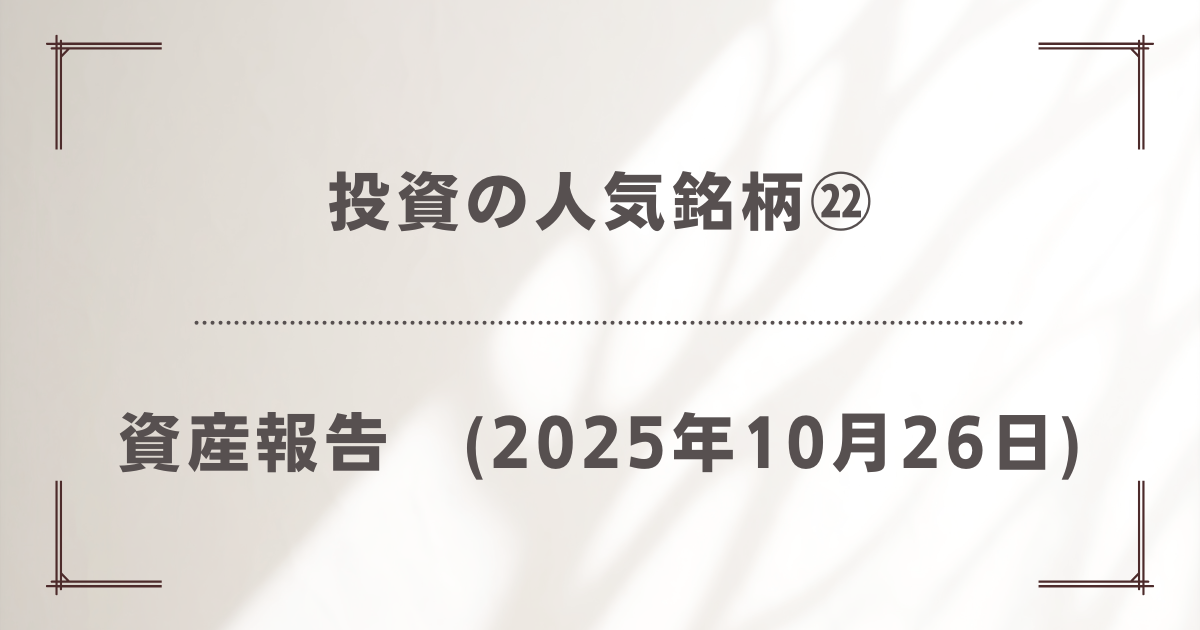 2025年10月26日時点での総資産は、3,260,460円(先週比+98,095円)となりました。
