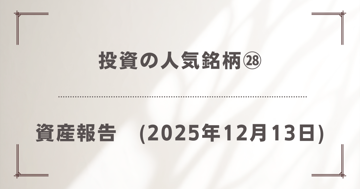 2025年12月13日時点での総資産は、3,692,256円(先週比+39,195円)となりました。