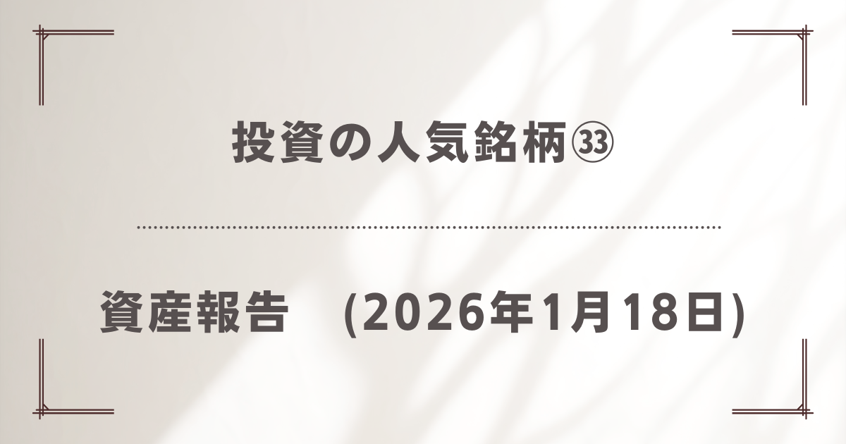 2026年1月18日時点での総資産は、4,085,677円(先週比+65,255円)となりました。